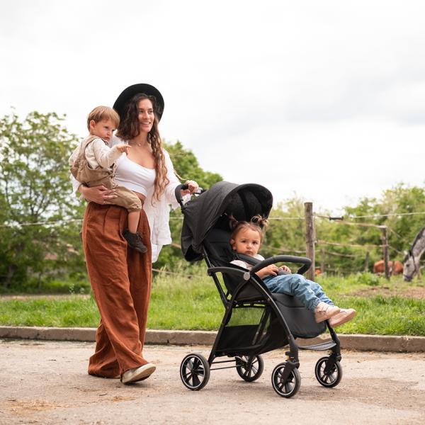Carucior pentru copii Lorelli Fresh Black Pearl ultra-light, suport picioare reglabil, bara detasabila, suspensie, greutate admisa 22 kg